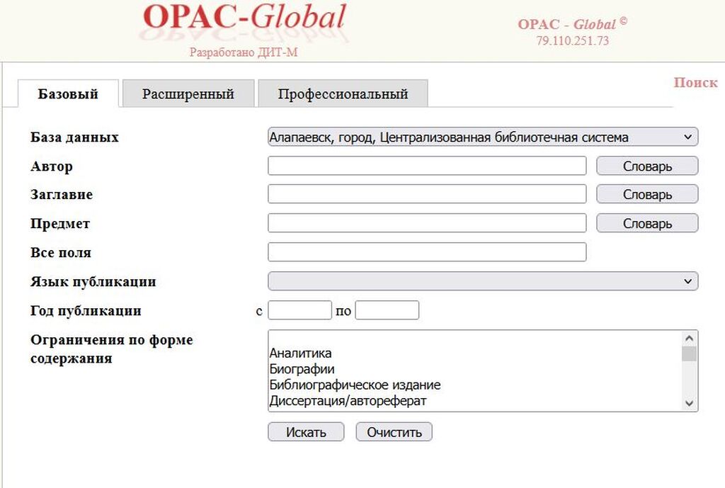 В сети Интернет каталог опубликован с помощью АБИС "OpakGlobal" (Дит-М)