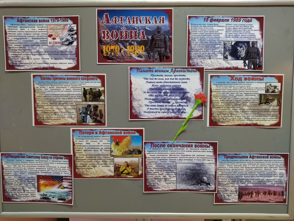 - Информационный стенд «Афганская война 1979–1989», расположенный на абонементе. Здесь вы найдете хронологию событий, документальные свидетельства.