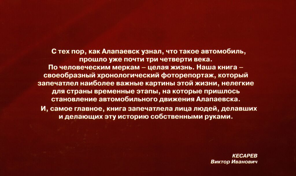 Издание представляет собой уникальное документальное свидетельство по истории автотранспортного предприятия Алапаевска.
